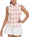 【Women's Printed Golf Shirts Material】:This sleeveless golf shirt is super cool and soft with UPF 50+ sun protection material,protecting your skin from ultraviolet rays.Moisture wicking quick dry fabrics can draw sweat away from your skin, keeping you cool and comforbable during your favourite sports in summer