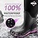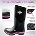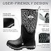 【DURABLE & COMFORTABLE】The reinforced waterproof rain boots rubber shell provides great protection for the toe and heel for more durability. Easy on and off with the two pull-on and kick, 7mm neoprene Insulated boots provide flexibility and shock absorption.