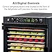 DIGITAL THERMOSTAT AND TIMER- AUTOMATIC SHUT OFF WHEN TIMER DONE -- An adjustable temperature and timer ensure you to have your delicious dehydrated food done to perfect at optimal temperature and exact timing; the Countdown timer will show you when it will be done, once done it will automatic shut off