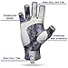KEY BENEFIT: Provides UPF 50+ Sun Protection – Fishoholic Super Sticky Fingerless gloves for men & women Block the Sun's Harmful UV Rays. Poly-Spandex 4-way Stretch gloves are snug yet allow movement, stay cool & dry quickly. Go have Fun & Stay Protected from the Sun. 3/4 Length Fingers Block the Sun but allow you to Thread a Hook & Tie Knots, Cast & yes, use your phone to take a picture!