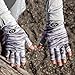 KEY BENEFIT: Provides UPF 50+ Sun Protection – Fishoholic Super Sticky Fingerless gloves for men & women Block the Sun's Harmful UV Rays. Poly-Spandex 4-way Stretch gloves are snug yet allow movement, stay cool & dry quickly. Go have Fun & Stay Protected from the Sun. 3/4 Length Fingers Block the Sun but allow you to Thread a Hook & Tie Knots, Cast & yes, use your phone to take a picture!