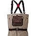 Comfortable 2 Tone Taupe stocking foot Breathable waders with double knee's, adjustable deluxe suspenders, new Quad pocket and attached breathable gravel guards.