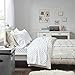 SET INCLUDES: 1 Comforter: 68"W x 90"L, 1 Standard Sham: 20"W x 26"L + 2"D, 1 Bedskirt: 39" x 80" +14"D, 1 Decorative Pillow: 12"W x 16"L, 1 Flat Sheet: 66"W x 102"L, 1 Fitted Sheet: 39"W x 80"L + 12"D, 1 Standard Pillowcase: 20"W x 30"L