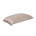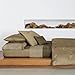 Yarn-dye dobby, straw colored woven sheet has a metallic band on the flat sheet and pillowcase