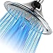 Extra-Large 8 inch Rainfall LED Shower Head with 5 settings is powered by running water; no batteries required Three-color changing water temperature sensor