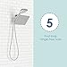 6-SETTING HAND SHOWER WITH: Power Rain, Pulsating Massage, Power Mist, Rain Massage, Rain Mist, Water Saving Pause mode | PATENTED 3-WAY WATER DIVERTER: Simply turn switch to direct water flow between two showers. Anti-Swivel Position Lock Nut for easy and secure connection | ANGLE-ADJUSTABLE OVERHEAD BRACKET: Lets you point each shower where you want it for hands-free operation at desired angle | EXTRA-FLEXIBLE 5 FT. STAINLESS STEEL HOSE: Durable Heavy-duty design with Brass Connection Nuts.