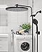 Round Shower Head Combo: This shower combination comes with 12 inch large round rainfall shower head, Matte Black face 7-Spray settings handheld shower head, 71 inch stainless steel shower hose, 12 inch shower head extension arm, adhesive shower head holder, washer, water restrictor, and installation manual. All metal solid Brass stainless steel extra long 71 inch shower hose is made of odorless EPDM material that can be used in high pressure and high temperature environment.