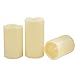 Waterproof flameless resin pillar candles. These cream white fake candles are truly waterproof, can be used both indoor and outdoor. They look like and flicker like real candles, can decorate your festivals as Halloween, Thanksgiving, Christmas, New Year… and they will create a romantic atmosphere for your home, kitchen, bathroom…