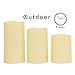 For outdoor and indoor use. The plastic battery candles are waterproof and designed for outdoor use to decorate your garden, yard, patio, swimming pool or an outdoor activity such as a BBQ party. Of course, the resin pillar candles can be used indoor as well. Used as decorative lights, flameless LED candles are as good as real candles. Flameless candles create a warm, peace, and romantic ambiance.