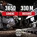 LIGHT SPECIFICATIONS: 3650 Lumen Max Light Output, 330 Meter (1083 ft) Max Beam Distance, and 58.5 Hour Max Runtime