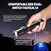 Dual Side Switches: Side Dual-Switch Tactical UI, independent strobe switch, One-Touch Strobe for emergency situation. 2 switches, larger control surface, independent control, quick and intuitive. One-Hand Full Range Control, Increased grip area, cross-shaped texture, anti-slip, securely held in hand, full-range control even with gloves.