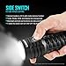 Dual Side Switches: Side Dual-Switch Tactical UI, independent strobe switch, One-Touch Strobe for emergency situation. 2 switches, larger control surface, independent control, quick and intuitive. One-Hand Full Range Control, Increased grip area, cross-shaped texture, anti-slip, securely held in hand, full-range control even with gloves.