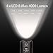Four in One Super Bright: Using four high performance 6500K LED, produce max 4000 lumen output, 5.4*1.2 inches handheld size, durable aluminium case make it lightweight to carry, also allow you to attach with lanyard(included), suitable for searching, hiking, trekking, hunting.