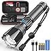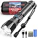 Super Bright LED Flashlight: Come with a durable nylon bag, perfect gift for men women kids. High lumen flashlight adopting upgraded chip can produce ultra-high output up to 20,000 lumens(Max), ideal for both general and outdoor special use. All accessories in the bag include a rechargeable battery, AAA battery pack for backup, a Type-C charging cable, a belt holster and a keychain flashlight. A strap end of the flashlight also gives you a convenient way to hold it.