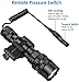 【Durable/ Military Material】 Rifle light with pressure switch adopts 6061T aluminium alloy, durable and hard. 150 yards bright green hunting light and focused beam, 250 lumens unfiltered green light output. Water-resistant design, can use it in rainy day