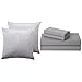 Home Bundle: includes 1 soft gray 24 by 24 throw pillow cases and 1 soft gray 4 piece queen bed sheet set including 2 pillowcases, 1 fitted sheet, 1 flat sheet