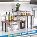 [UPGRADED STRUCTURE] Adding 2 steel legs, which is more stable than the previous one. BUILT FOR EXTENDED USE: Sturdy metal for the frame and durable chipboard wood for shelving; reinforced brackets; this stackable counter shelf is quite solid and has long service life