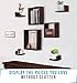 【ADVANTAGE】Each wall shelf has a area of around 435 square cm and is more than enough to display books, CD, plant terrarium, photo frame and etc.No sharpen edge design avoids accidentally scratch to human body or pets. it is entirely safely and suitable to be placed into living room,dining room,toilet, bathroom or kitchen.