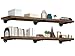 Rustic Wall Shelves: Torched wood finish and curve design for board and matte finish metal bracket features a carbonized black accent, which will be a great rustic addition to your wall.