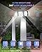 🌞【Solar Powered & Energy Saving】This solar outdoor lights is equipped with 2400 mAh rechargeable lithium-ion battery, can work continuously for more than 8-10 hours after a full charge, powered by polysilicon high-efficiency solar panel with a photoelectric conversion efficiency of about 24%, it can still get charged on rainy or winter days. When there is no sun, you can choose to use the charger to connect the power.