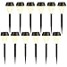 Solar Powered Path Lights: Maggift warm white pathway lights 12 Pack powered by solar are the perfect decorative outdoor lighting and no electricity required. The solar panel supports long-term operations. They automatically turn the lights on at dusk and off at dawn, saves energy. Measures: 2.6 x 2.6 x 10 inches per lights.