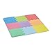 Includes a square play mat with 36 interlocking puzzle pieces, 54 borders, and 9 vibrant colors