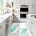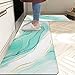 【Kitchen Mat Set 2 Piece】2 pieces teal marble kitchen mat set measures 17.3" x 28" + 17.3" x 47", 0.4 inches (10mm) thickness. Comfortable kitchen floor mats create perfect support and softness for standing, which helps reduce your ankle fatigue. (Due to manual measurement, there may be slight errors in size)