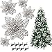[Classic Design]:Easy to assemble and Shatterproof Glitter Flower Ornaments allow you to simply open and push them in / between Christmas tree branches .Artificial Christmas flowers with glitter, easy to attach to the tree, the simplicity design adds festive atmosphere for Christmas.