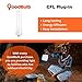 LONG LIFE: GoodBulb's 18 watt CFL plug-in bulb is rated for an average of 36,000 life hours. This is more than 3.5 times greater than the industry average of 10,000 hours for long fluorescent plug in bulbs. Reduce time and money spent on replacing 2g11 4-pin base tubes in your high ceiling fixtures and panels by making the switch to GoodBulb.