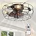 🎨 Vintage Farmhouse Ceiling Fan - Rustic flush mount ceiling fan. Hand-made twisted metal mesh with wood color circle on up&bottom to accent the retro farmhouse, industrial style