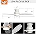 QUIET REVERSIBLE MOTOR: The white ceiling fan with light features a quiet and reversible DC motor, which delivers strong and cool wind during summer and optimizes air circulation in winter, outperforming traditional AC motors. Enjoy a peaceful and cool summer night with a motor that produces less than 30dB of noise.