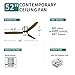 DIMENSIONS: Measures 11.75'' from the ceiling to the lowest point of the fan with the included 6" downrod. This Contemporary Ceiling Fan has a blade sweep diameter of 52'' with 22° Blade Pitch