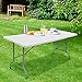 【Fold in Half Table】 The 6 foot folding table can be folded into a small flat cube anytime and anywhere. With a convenient carrying handle for easy transportation