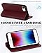 MULTI-FUNCTIONAL - The iPhone SE3 wallet case features 3 card slots and a side pocket for money or additional cards. Convenient hidden magnetic closure keeps all your valuables in place neatly and securely. Its invisible kickstand can be switched to a horizontal position and acted as a firm stand. Gives your phone a comfortable viewing angle while not adding thickness to your flip wallet leather case