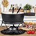 PERFECTLY MELTED INGREDIENTS - With its durable quality cast iron construction, our fondue pot melts your chocolate and cheese to the perfect temperature. It boasts excellent heat retention and distribution that keeps your fondue warm. You can easily control the flame with a simple turn on the included adjuster.