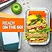 AIRTIGHT SEAL: The glass containers for food storage BPA free features 4 snap leak-proof lid that creates an airtight seal for food freshness. Newly innovated hinged-lids technology makes the lid easy to flip open & shut. Great for gym, pool, or work