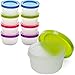 16 ounce plastic food containers, set of 12 clear food storage containers. Set includes 12 clear containers, and 4 green, 4 red, and 4 blue twist on covers.