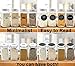 THE MOST COMPREHENSIVE JARS & LABELS SET: 25 glass spice containers, aluminum caps, sift/pour shakers, coarse shakers, 667 preprinted spice labels, pantry labels & blank labels, and an exclusive numbered spice & pantry reference sheet, and a funnel to help transfer spices; Switch your mismatched spices jars or plastic bags of spices with these uniform shape and size containers in an alphabetic order to organize your spices neatly and efficiently in your spice racks, cabinets, or drawers
