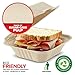 Compostable Clamshell To Go Containers | 6x6" | 125 Pack Bulk | Single Compartment | Heavy Duty & Disposable