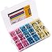 PREMIUM QUALITY WIRE CONNECTORS KIT: 620PCS electrical connectors kit includes ring,fork,hooks,spade and heat shrink wire connectors to meet your daily needs.There are butt connector 70pcs,forks 70pcs,hooks 70pcs,spads 60pcs,female spades 60pcs,rings(10,1/4,5/16,3/8)270pcs and butt connector 26-24 20pcs.They are neatly packed in transparent boxes and can be easily identified by different color-coded tubes with wire gauge markings.