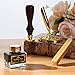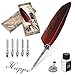 Feather Quill Pen and Ink Set - Joyeee vintage feather quill pen and ink set include feather dip pen, 15 ml bottle of black ink, dip pen nibs, 4 colors ink cartridges, metal feather pen bases, gold sealing wax sticks, wax seal stamp, and exquisite retro gift box for making it a perfect high-end gift.