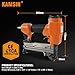 【User Friendly Design】Proper setting of nails/staples. 360° rotatable exhaust keep contaminants away from work. Tool-free jam clears jammed nails quickly. A Quick release 100-nails/staples capacity magazine.Sequential style trigger. A nail/staple view window avoid dry fire dent mark left on working surface. A rubber grip handle for comfortbale use experience. Lightweight & durability, easy to carry and have long life.