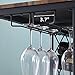 The metal bars on the underside of the rack are designed to hold 12 to 18 stemware glasses, depending on size