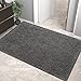 ABSORBS MOISTURE AND DIRT: Thanks to upgraded new polyester fiber material, our indoor doormat can quickly absorb moisture and scrap off dirt, water, dust, grit, mud, sand, sleet, grass, slush, rain, snow from your shoes instantly, keeping floors clean and dry. As we professionally tested, after three months of use, our doormat still has stronger water absorption than average mats.