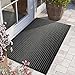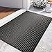 ABSORBS MOISTURE AND DIRT: Our entryway mats are made from 100% Polyester and Non-toxic eco-friendly recycled rubber. The woven design is super absorbent and durable. Premium entrance mats effectively trap mud, water and debris before it reaches your home or office floor. Perfect for snowy and rainy weather. Our doormat features a classic gray with black lowered stripes.