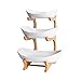 【3 Tiered Fruit Bowl Set】This exquisite fruit bowl is made of high-quality ceramic and porcelain. The ceramic fruit bowl does not contain harmful plastics, cadmium or lead. Never worry that harmful substances will seep into your food. The wooden bracket has good stability and decoration. The white fruit bowl can match your desktop or kitchen counter well.