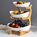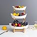 【High-quality Material】Our 3 tier fruit basket is made of ceramic and porcelain, which not contain harmful plastics, cadmium or lead. The wooden bracket has good stability and decoration.