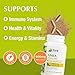 Vitamin C Gummy: A powerful antioxidant and essential vitamin your body is unable to produce naturally, which must be obtained through supplementation; It gives immune support and helps defend against free radicals and oxidation