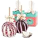 One pure milk chocolate dipped caramel apple drizzled with white chocolate decorated with confetti sprinkles