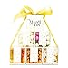 6 CANDIES: Within this mazel tov basket, we include six distinctly delicious candies. The edible gifts in this set are Nordic Mints, White Fruit Sours, Champagne Bubbles, Butterscotch Buttons, Gold Shimmer Jelly Beans, and S'mores Saltwater Taffy, all in their own box for guaranteed freshness.